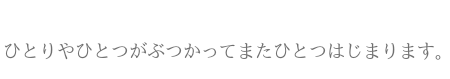 「人ともの、人と人、ひとりやひとつがぶつかって、また一つはじまります。」